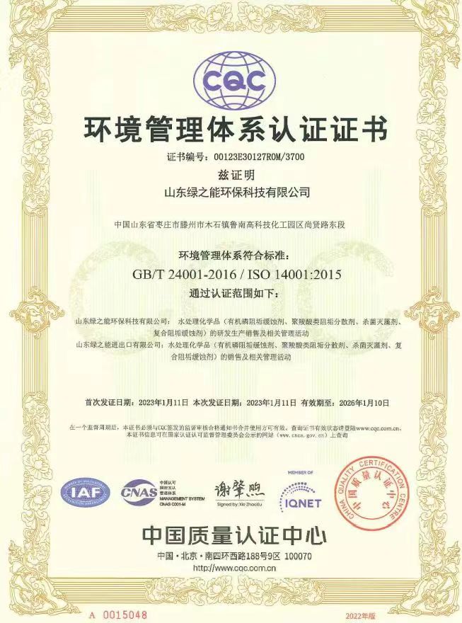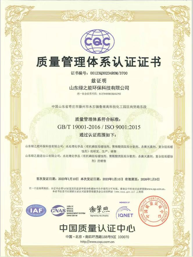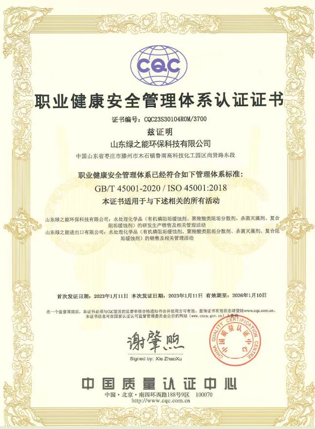 綠之能順利通過中國(guó)質(zhì)量認(rèn)證中心(CQC)的ISO專家評(píng)審組的審查,取得了ISO9001質(zhì)量管理體系認(rèn)證、ISO14001環(huán)境管理體系認(rèn)證、ISO45001職業(yè)健康安全管理體系認(rèn)證。